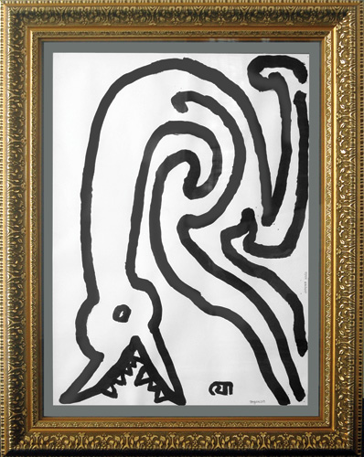 Black ink with brush on paper, 28 x 20 inches, 2009